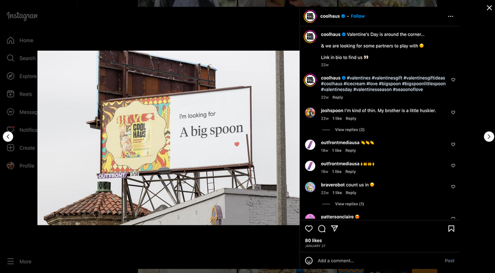 Sequence of billboard ads featured in LA and surrounding areas. Content was repurposed for social media. Please swipe for variations. Natasha Case and her wife, Freya Estreller, founded Coolhaus frozen desserts in 2009, so it makes sense the campaign was a playful spinoff of finding love through dating apps.